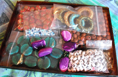 Hello. I try and keep things tidy so I know where to find things. There are plastic storage boxes you can buy, of varying sizes, to store small items in. I don't spend money if I can find a cheaper or free alternative. My bead collection is stored in various tins and boxes. These two plastic trays once contained posh cakes from M & S, I nabbed them after a party as they were about to be thrown out. The trays fit exactly inside an old chocolate tin, one on top of the other.